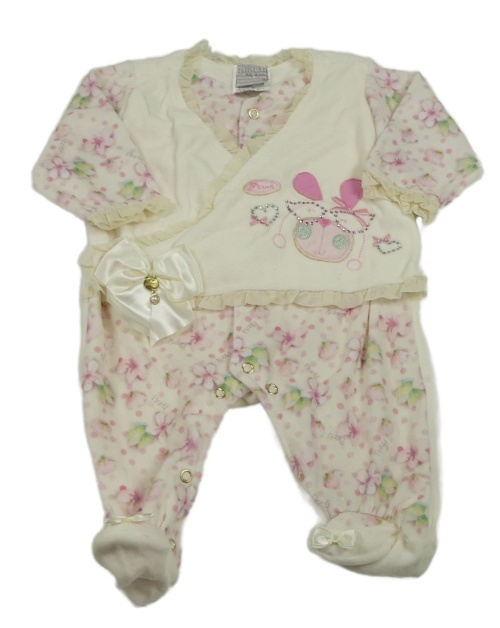 Biely kvetovaný zamatový overal s našitou vestou a králikom