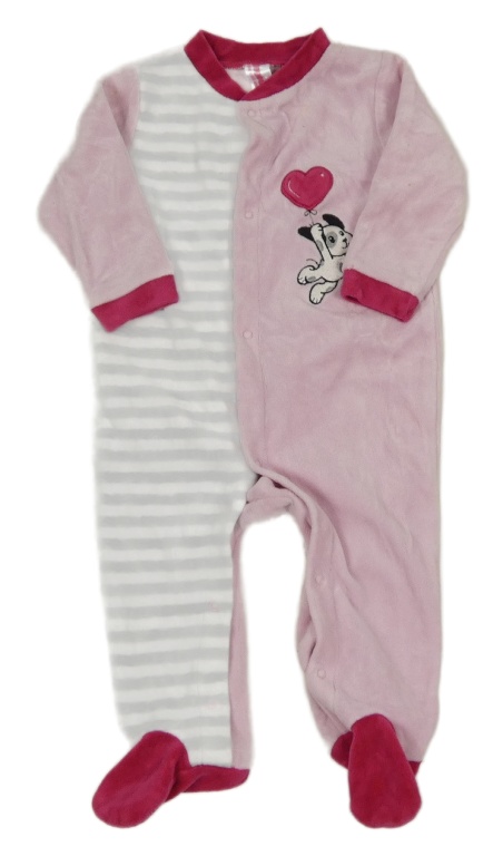 Ružovo-pruhovaný zamatový overal s psíkom Dopodopo
