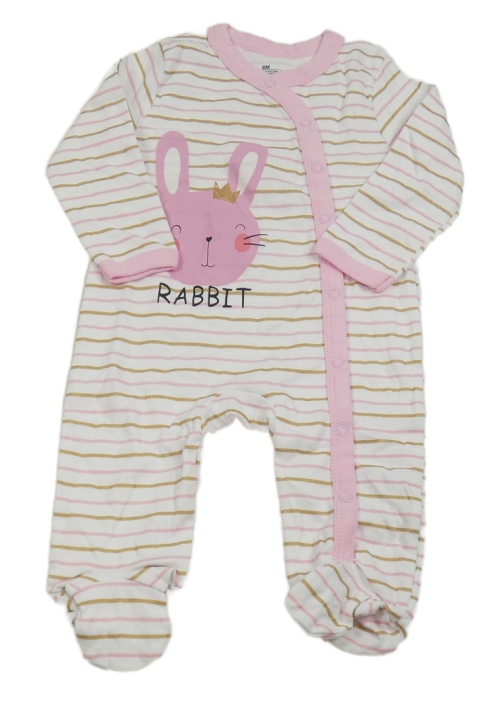 Bielo-zlato-ružový pruhovaný overal s králikom