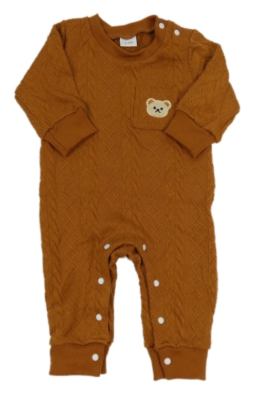 Medový vzorovaný pletený overal s medvedíkom