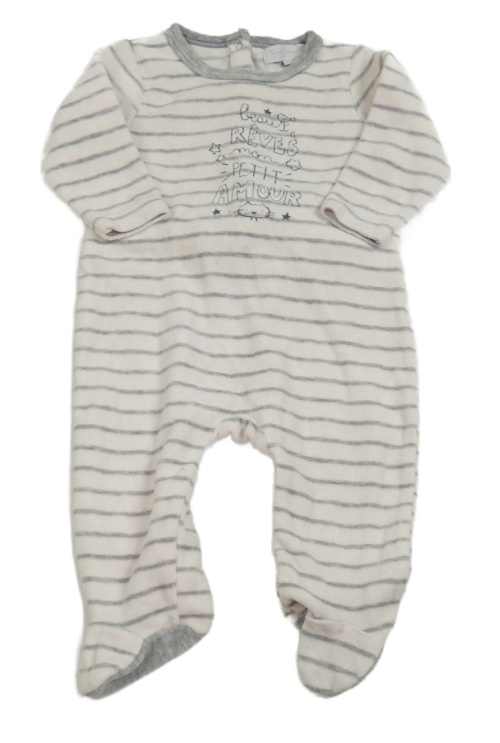 Svetloružová -sivý pruhovaný zamatový overal s nápisom