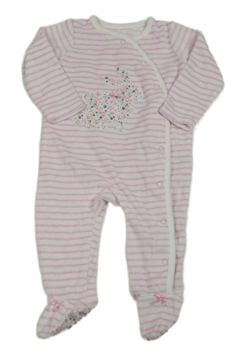Bielo-ružový pruhovaný zamatový overal s králikom St. Bernard