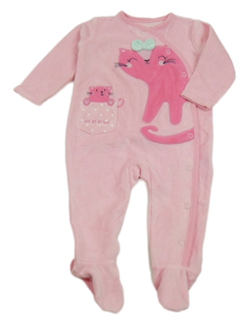 Svetloružový zamatový overal s mačičkou a koťátkem a vreckom St. Bernard