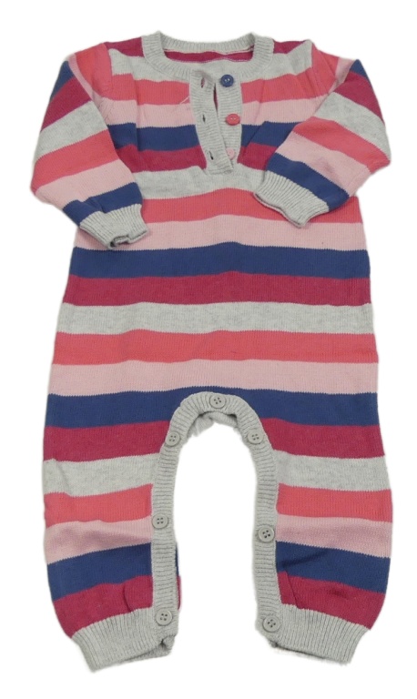 Ružovo-sivo-tmavomodrý pruhovaný pletený overal Mothercare