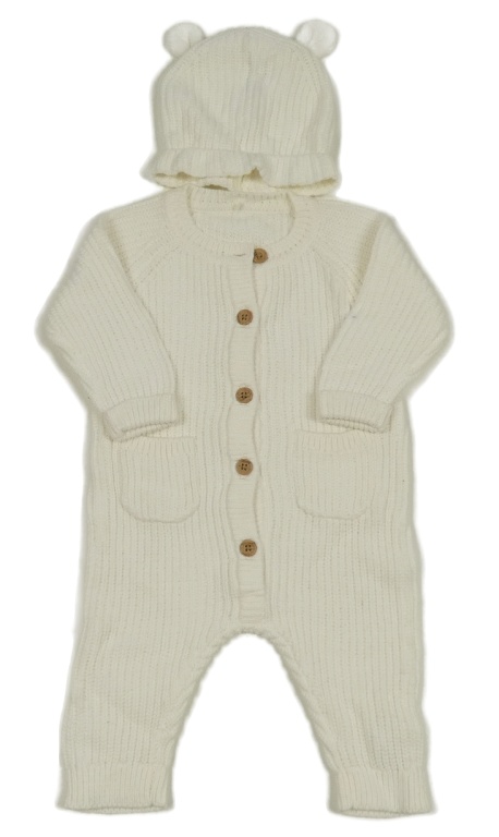 Nové - 2set - Smotanový pletený overal + čapica s uškami George
