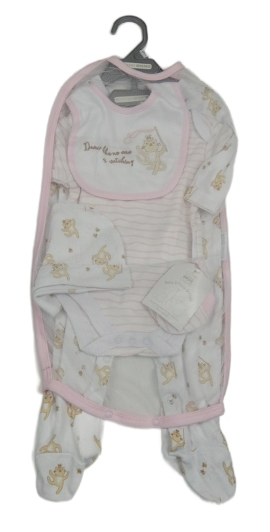 Nové - 5set - Bílý overal + pruhované body + bryndák + čepice + rukavice Nursery Time