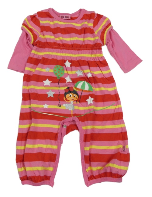 Ružovo-červeno-žltý pruhovaný overal s dívkou