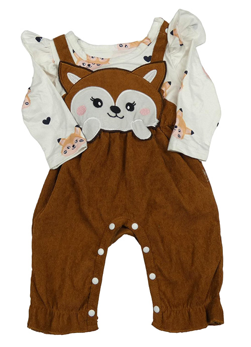 Hnedý ľahký menšestrový overal s bielými rukávy s liškami