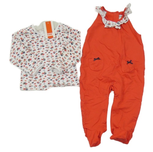 Nové - 2Set - Červené dupačky s mašličkami a volánkem + biele tričko s kvietkami a jahůdkami KANZ