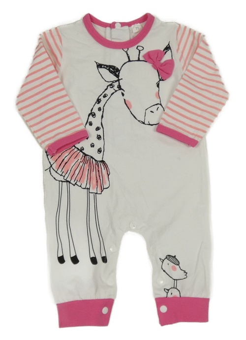 Bielo-tmavorůžovo-ružový overal so žirafou a pruhmi