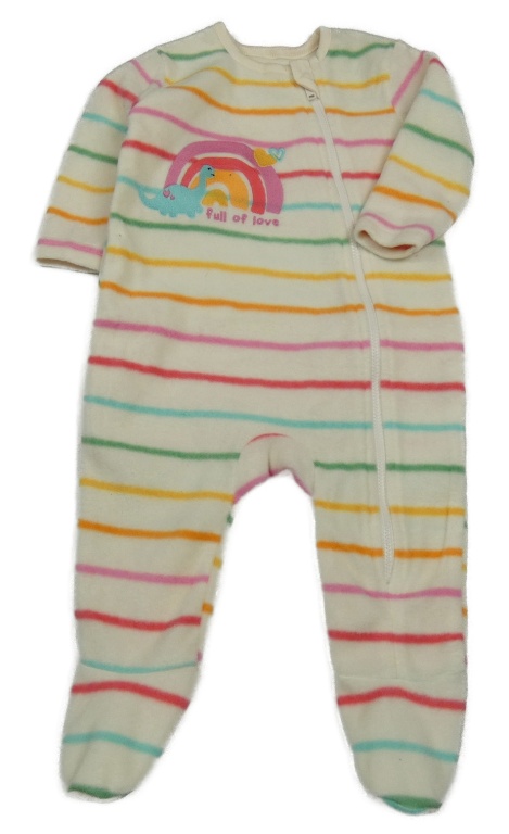 Smetanovo-farebný pruhovaný fleecový overal s dúhou a dinosaurom St. Bernard