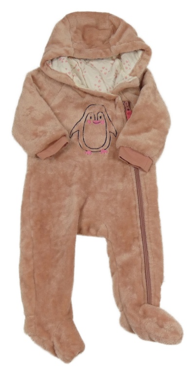 Staroružová plyšová podšitá kombinéza s tučňákem a kapucňou Liegelind