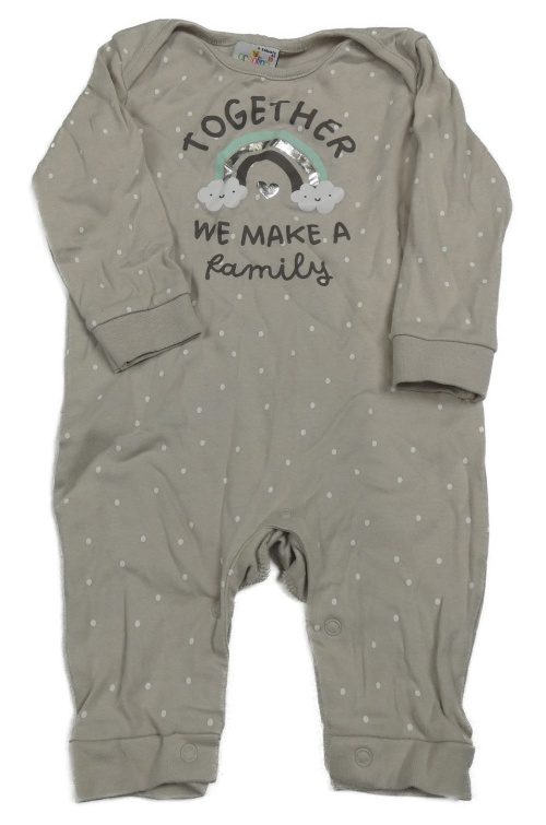 Šedobéžový bodkovaná ý overal s dúhou a nápismi orsolino