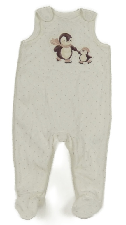 Bílo-růžové puntíkaté sametové dupačky s tučňáky C&A