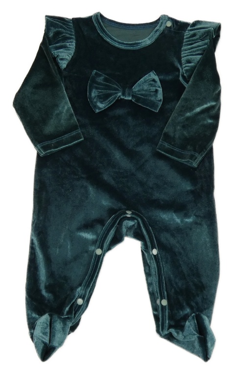 Petrolejový zamatový overal s mašlou a volánikmi Shein