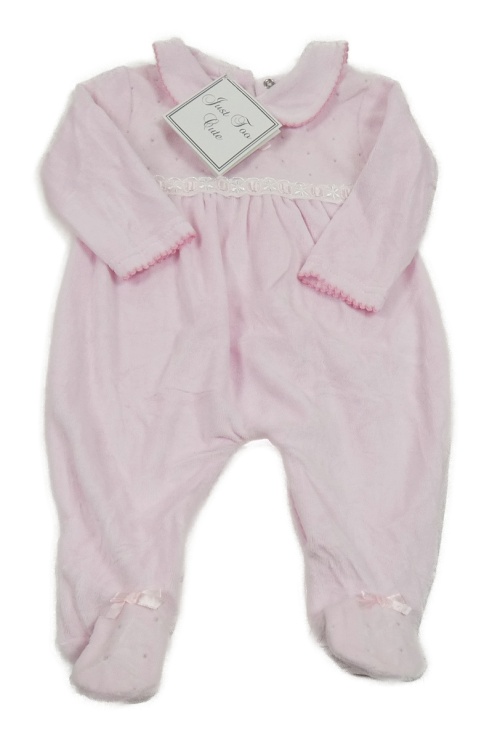 Nové - svetloružový zamatový overal s bodkami a mašličkami a golierikom Just too Cute