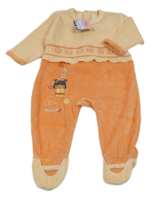 Nové - světleoranžovo-oranžový zamatový overal s obrázkom Sucre d'Orge