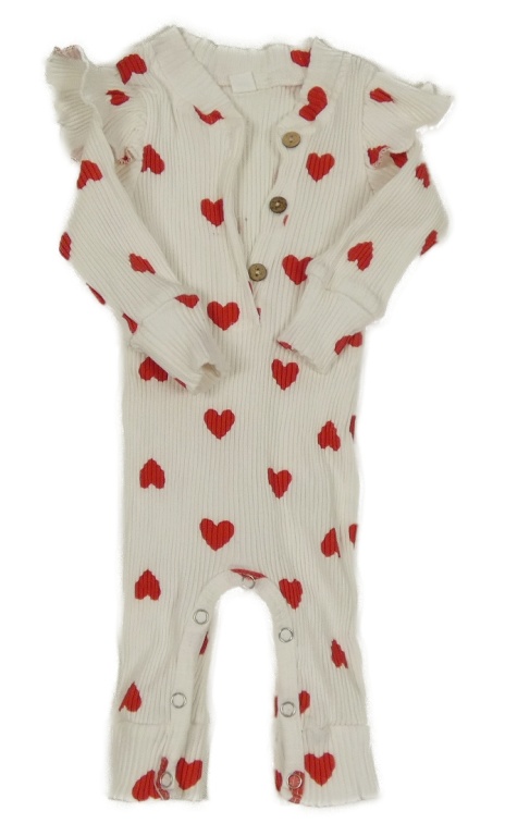 Biely rebrovaný overal s červenými srdiečkami