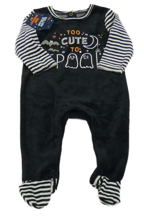 Nové - Čierno-pruhovaný zamatový overal s duchy a netopýry