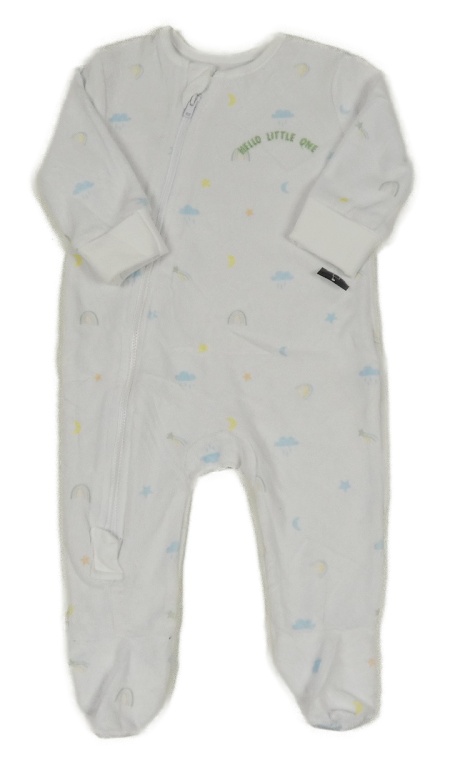 Nové - biely zamatový overal s obláčikmi a duhami St. Bernard
