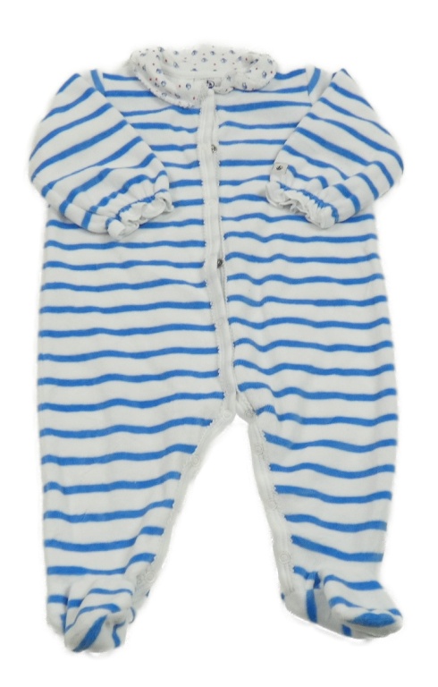 Bielo-modrý pruhovaný zamatový overal s golierikom Petit Bateau