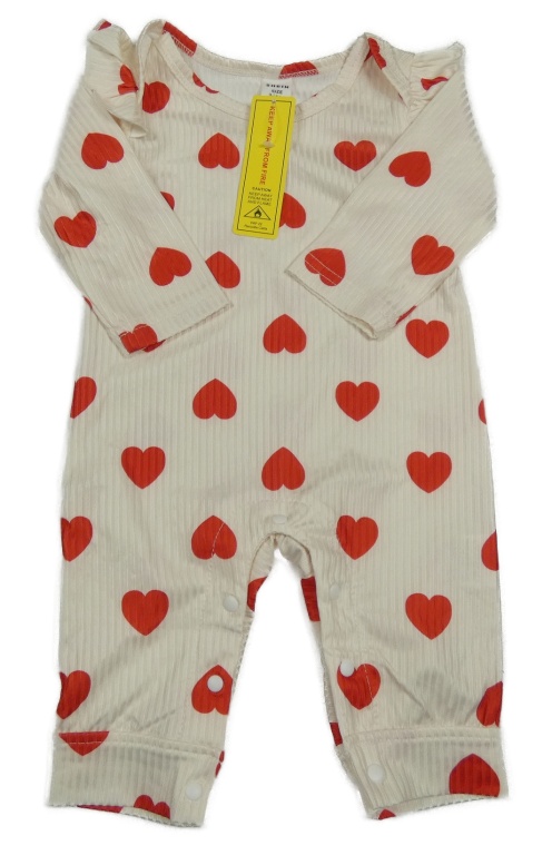 Nové - smotanový rebrovaný overal s červenými srdiečkami shein