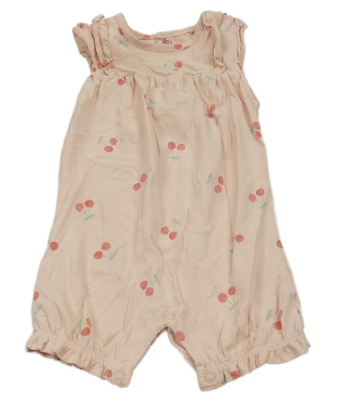 Svetloružový bavlnený kraťasový overal s třešničkami Tu