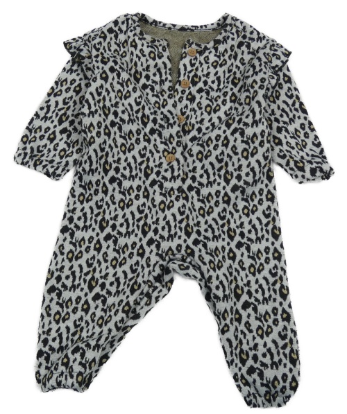 Sivo-čierny leopardí úpletový overal s volánikmi Nutmeg