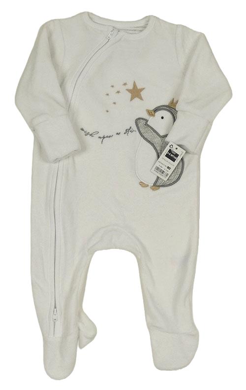 Nové - Biely zamatový overal s tučňákem Dunnes