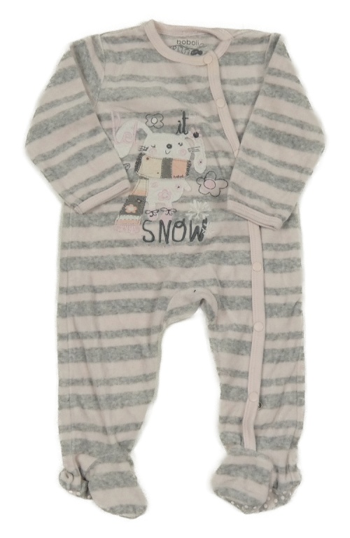 Sivo-ružový pruhovaný zamatový overal s králikom