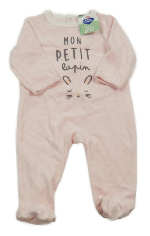 Nové - Svetloružový zamatový overal s nápisom a králikom