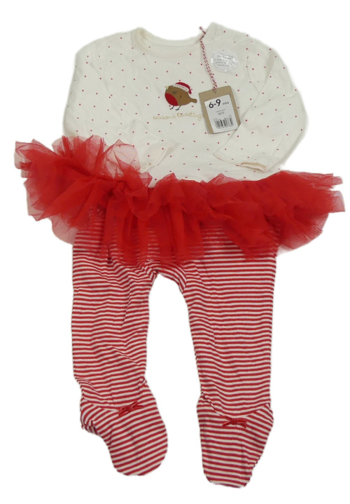 Nové - Bielo-červený overal s tylem a vtáčikom Mothercare