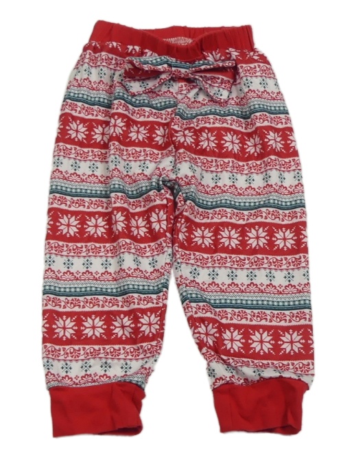 Červeno-bielo-zelené vzorované pyžamové nohavice s mašlou