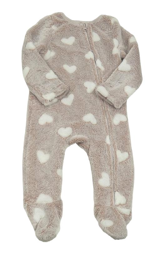 Pudrovo-biely chlpatý overal so srdiečkami Tu