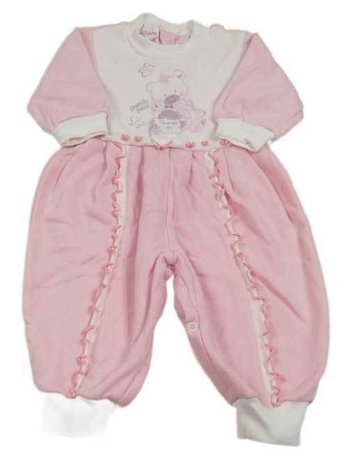 Svetloružová -biely teplákový overal s medvedíkom