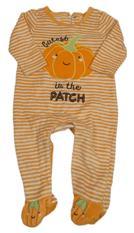 Oranžovo-biely pruhovaný zamatový overal s tekvicou