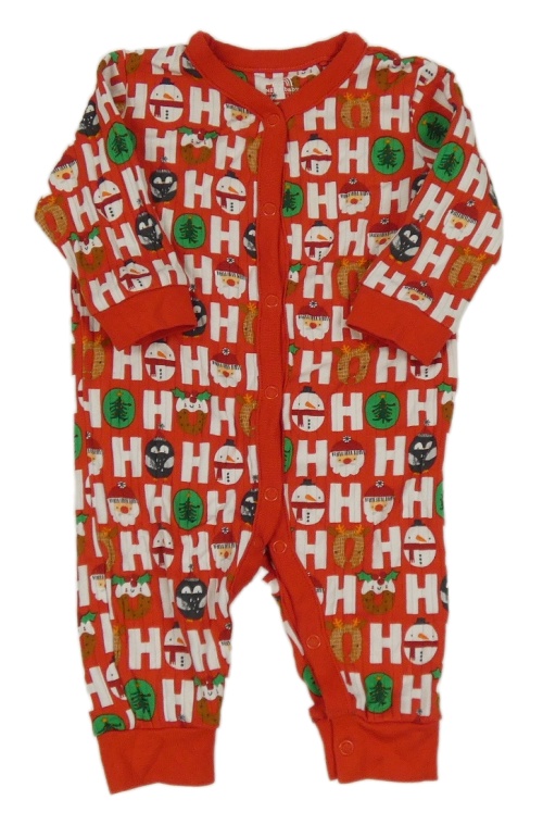 Červeno-biely vianočný overal s nápismi a obrázkami Next