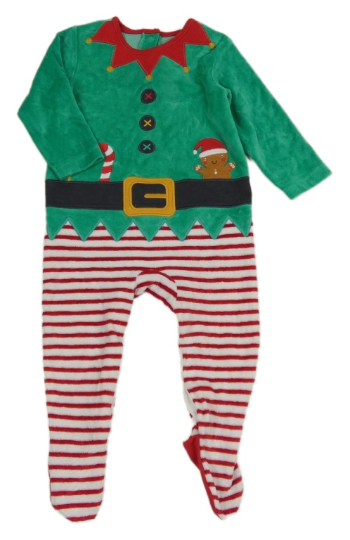 Zeleno-červeno-biely zamatový overal s perníčkem - elf Nutmeg