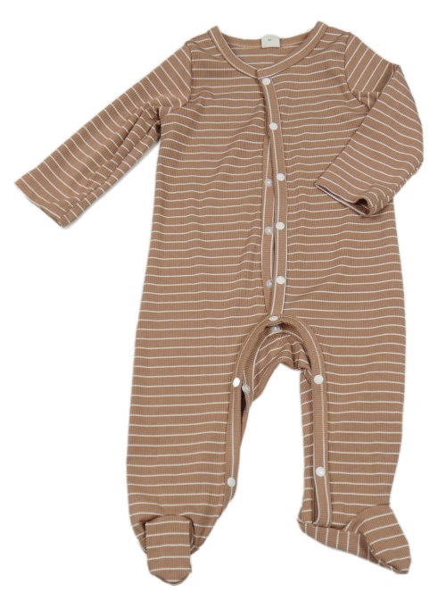 Starorůžovo-biely pruhovaný rebrovaný overal Shein