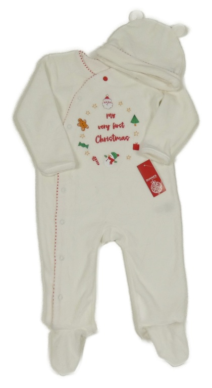 Nové - 2 set - biely zamatový overal s nápisem + čapica dunnes