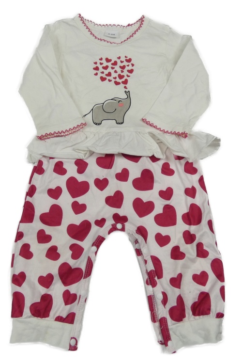 Smetanovo-svetloružový overal so slonom a srdiečkami