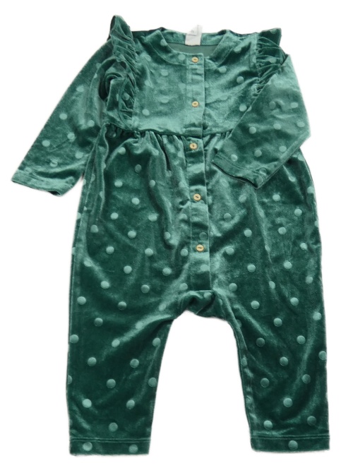Zelený zamatový overal s bodkami a volánikmi H&M