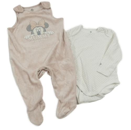 2set- světlerůžové sametové dupačky s Minnie + biele bodkovaná é body Disney