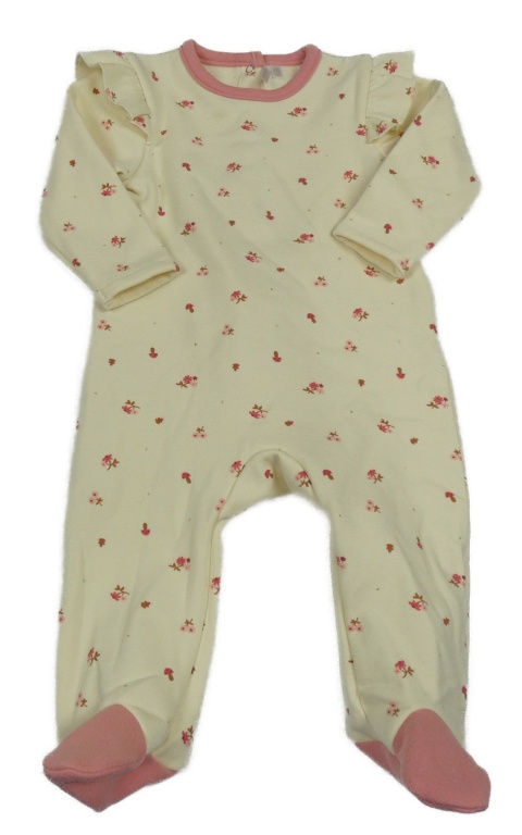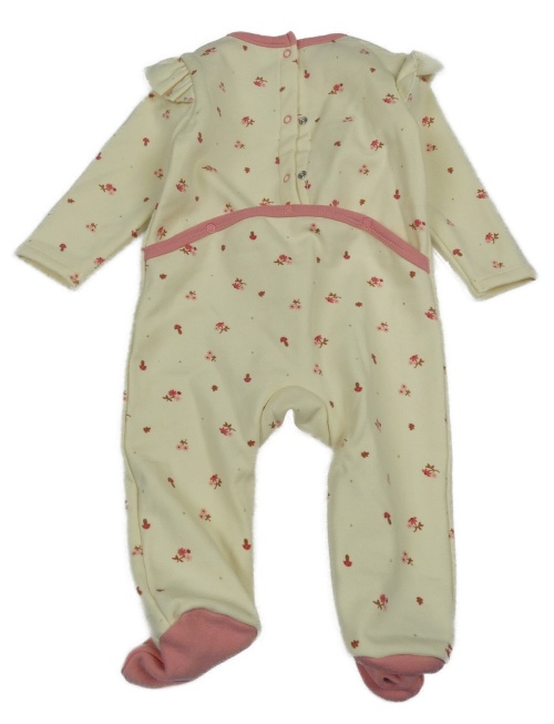 Vanilkový teplákový overal s kvietkami a růžovým lemem