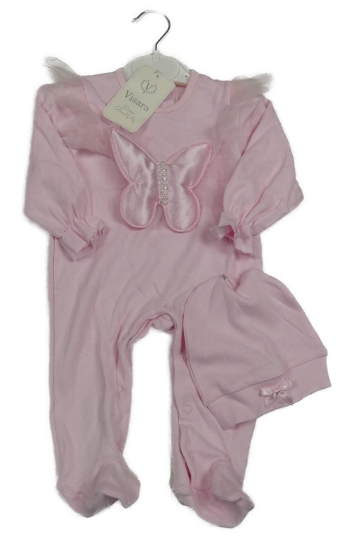 Nové - Svetloružový overal s 3D motýlom a čapica