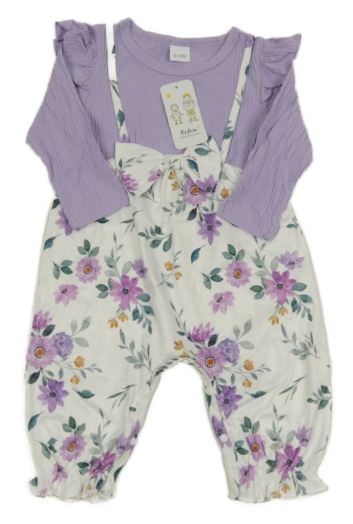 Nové - Bielo-levandulový overal s kvetmi a mašlou