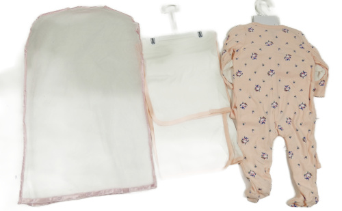 Nové - 6 set - biela deka + ružový overal + ľahké tepláky + body + triko + podbradník