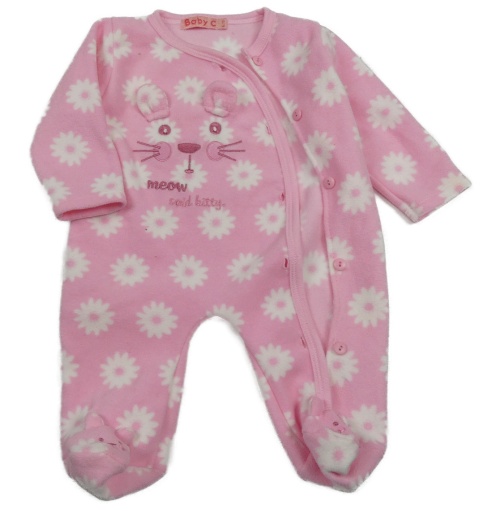 Ružovo-biely kvetovaný fleecový overal s ňufáčikom