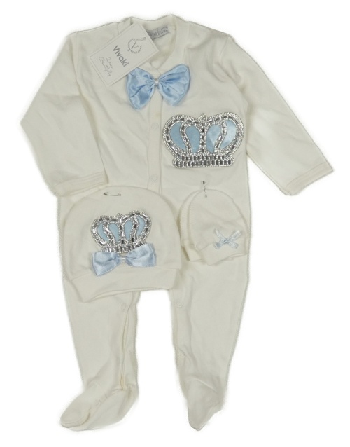 Nové - 3Set - Biely overal s korunkou s kamienkami a mašlí + čepice + rukavice Vivaki
