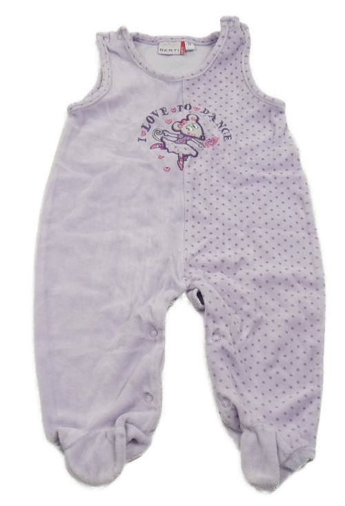 Lila sametové dupačky s myškou a bodkami